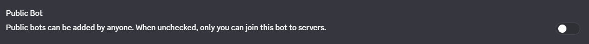 (권장) 공용 봇 옵션은 기본으로 켜져 있는데 굳이 공용으로 할 필요가 없으니 나만 추가할 수 있게 끈다.