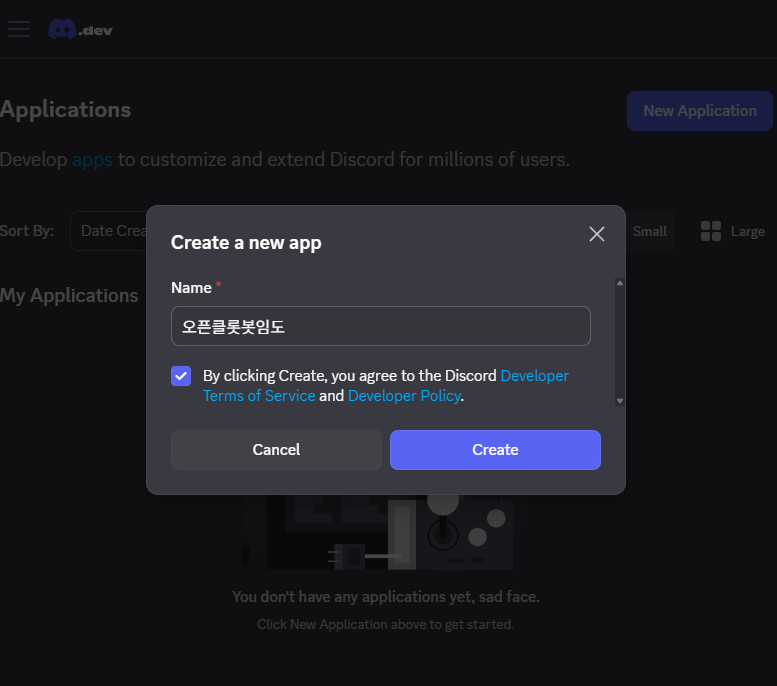 우선 디스코드 개발자 포탈로 이동한다.