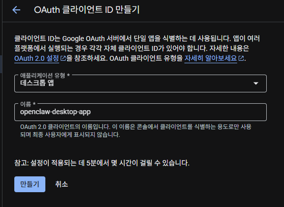 OAuth 클라이언트 만들기